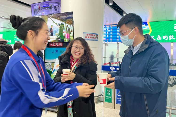“十四冬”群眾項(xiàng)目比賽浙江省代表隊(duì)在機(jī)場(chǎng)合影。
